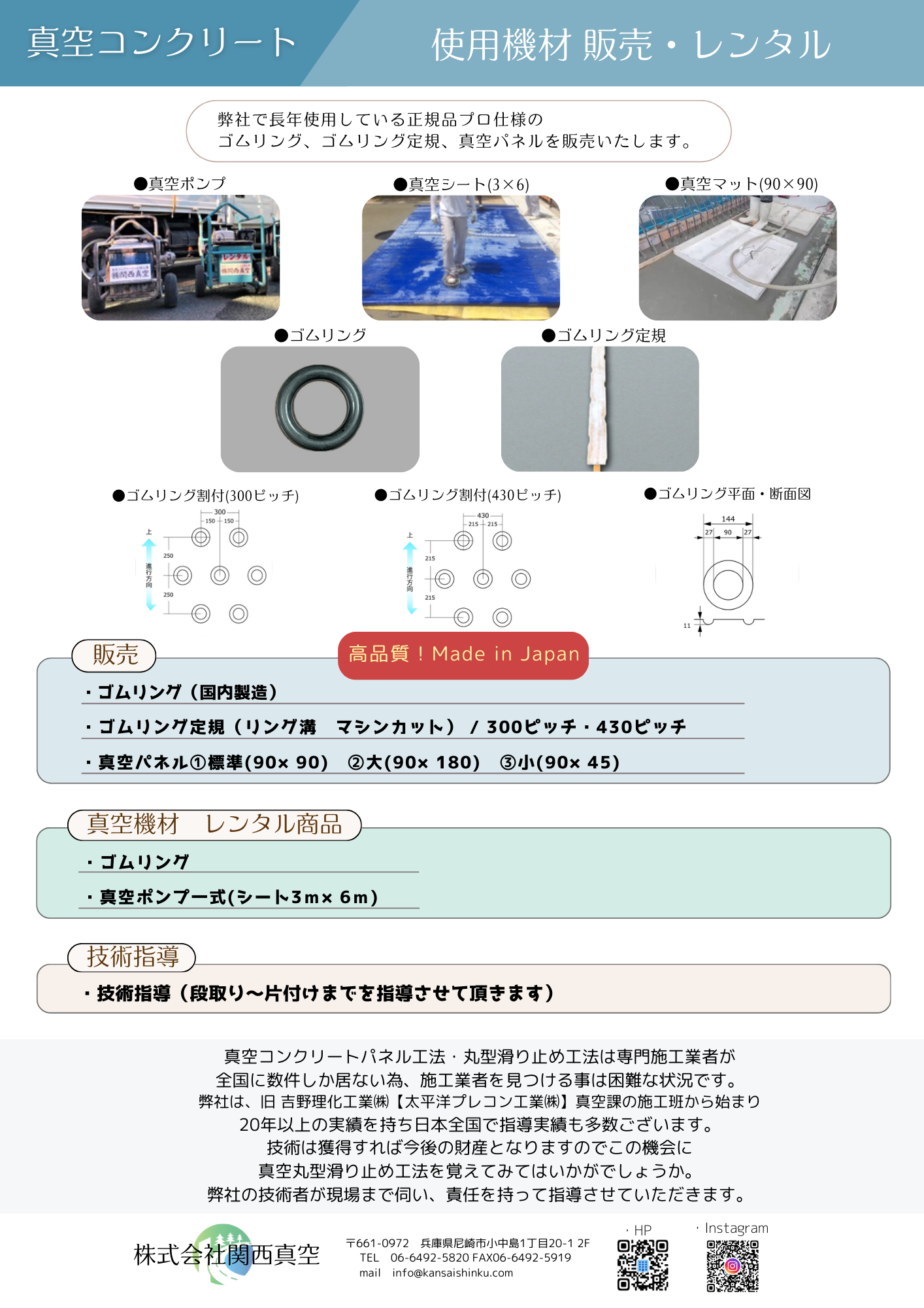 真空コンクリート☆真空機材レンタル・販売 技術指導☆