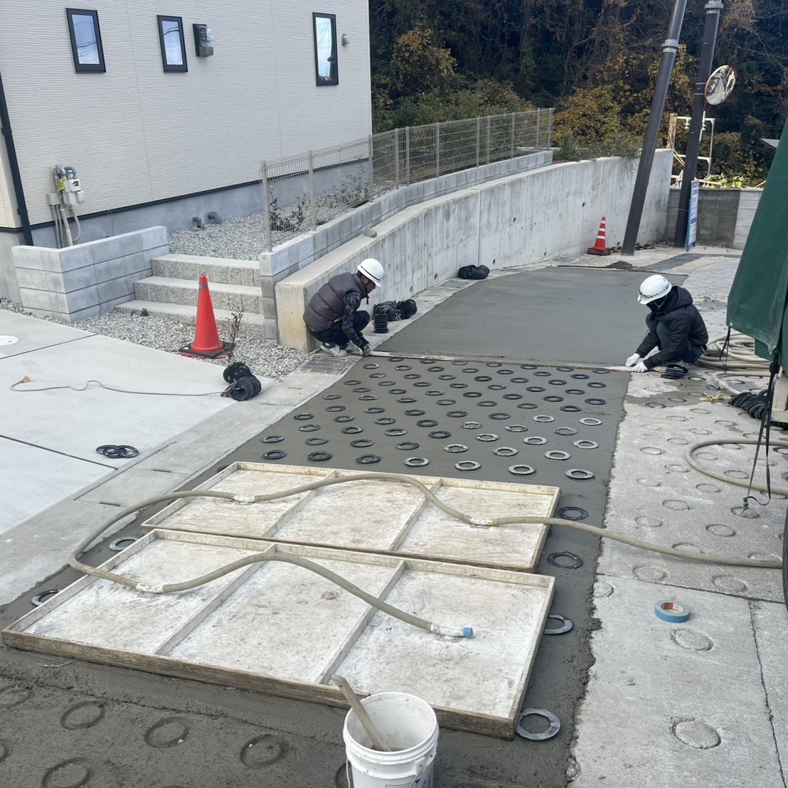 坂道に真空コンクリート工法【リング工法】
