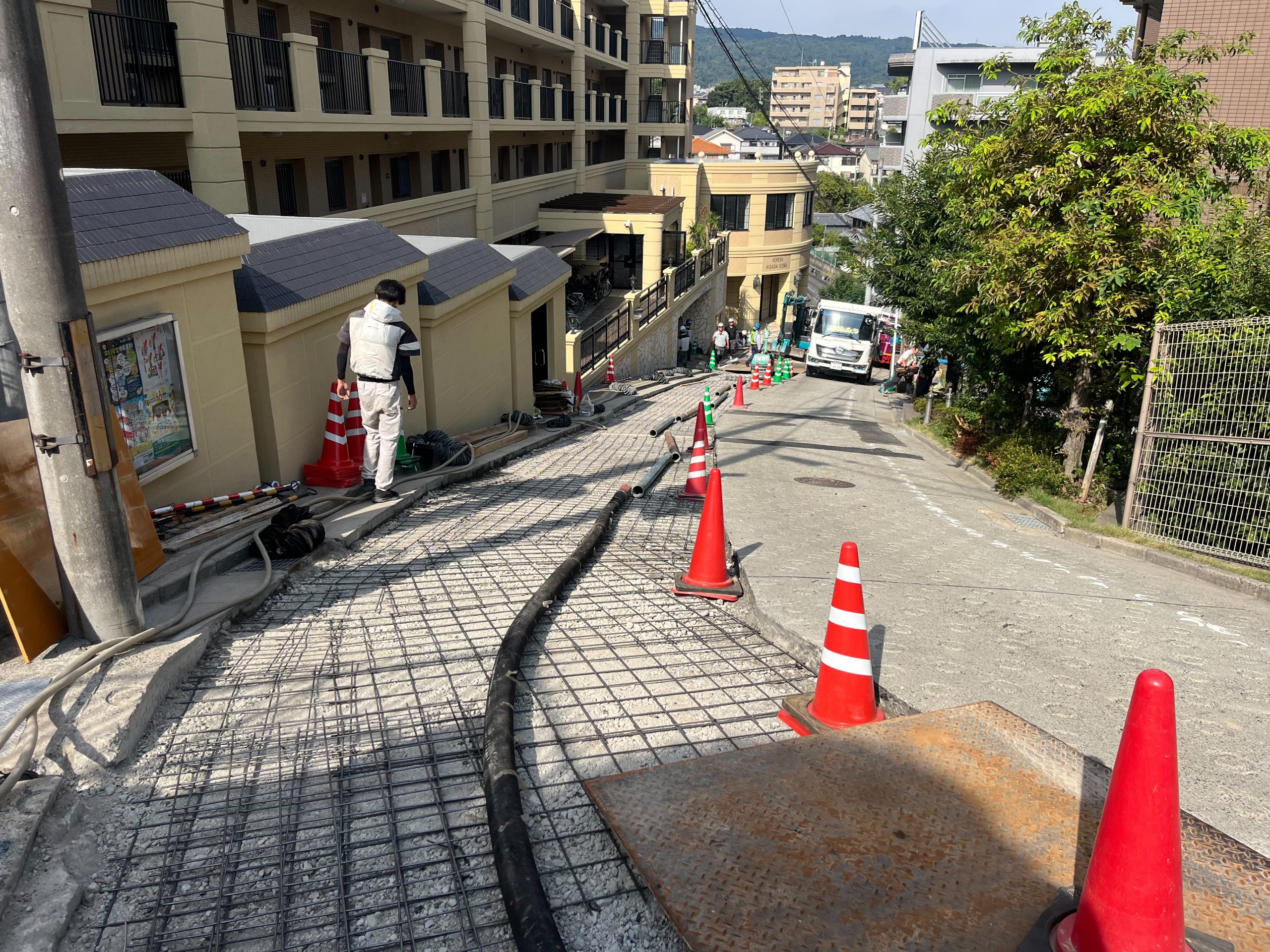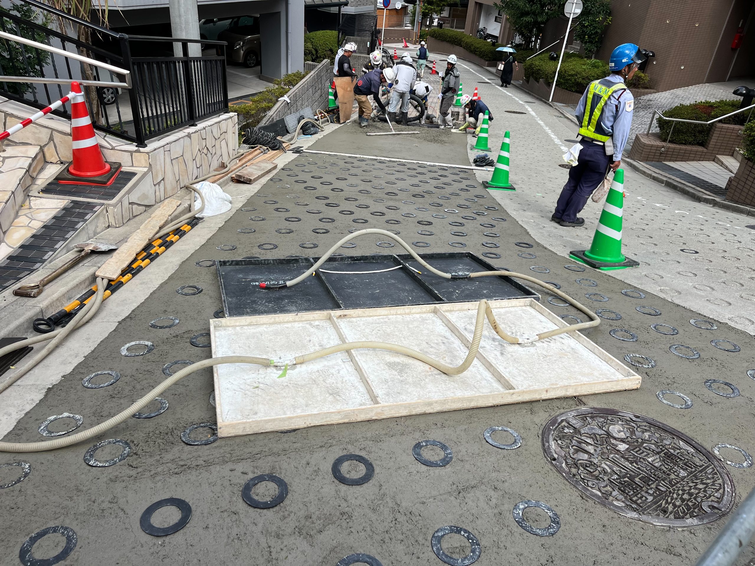 住宅街の坂道に真空コンクリート丸型滑り止め施工をさせて頂きました🌟