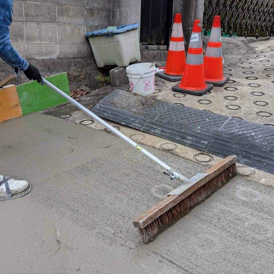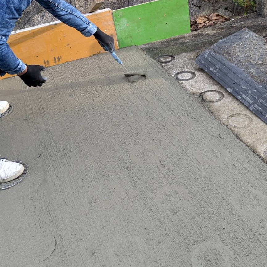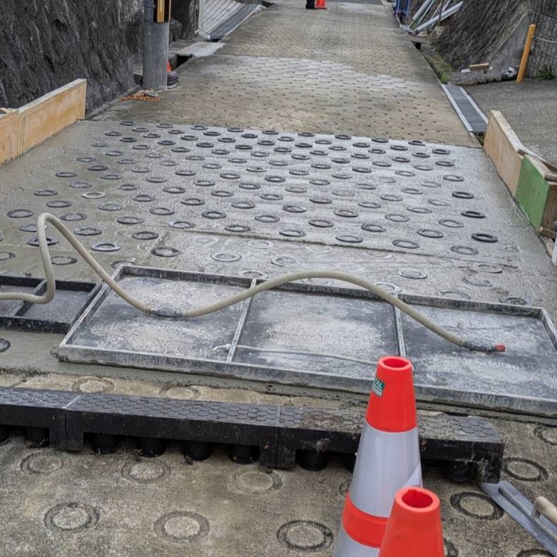 坂道に真空コンクリート舗装 【リング工法】