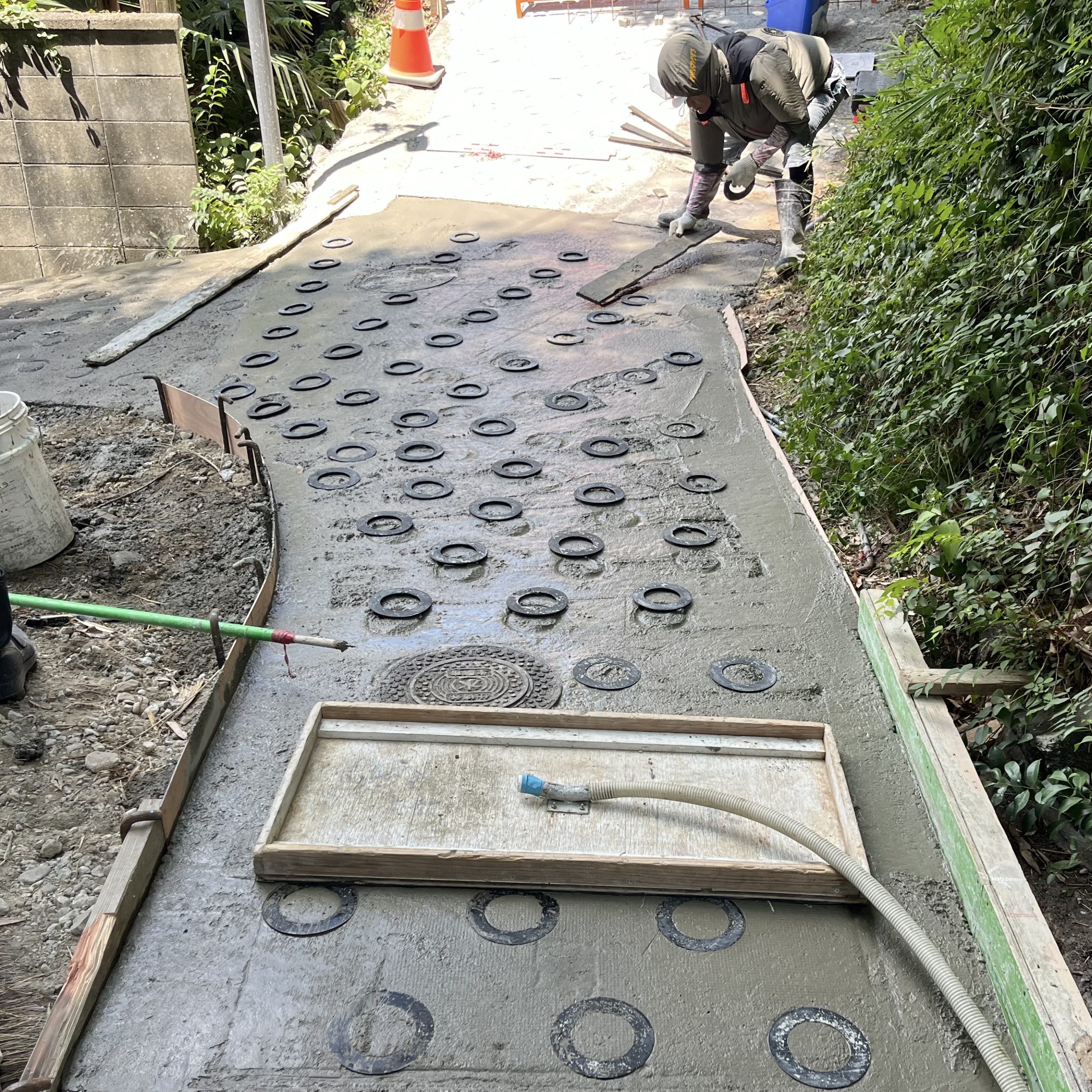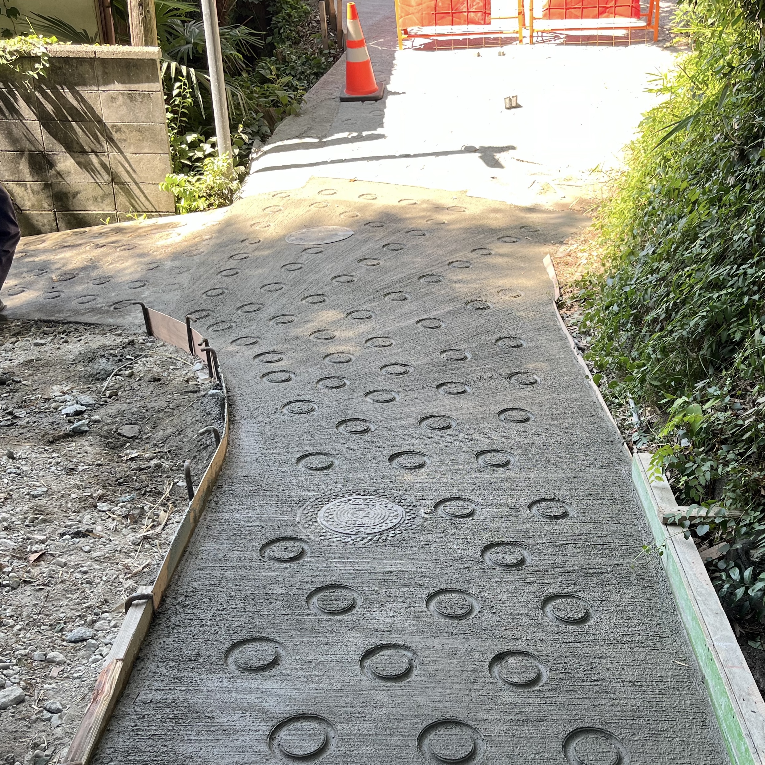 急な坂道に真空コンクリート丸型滑り止め施工させて頂きました🌟